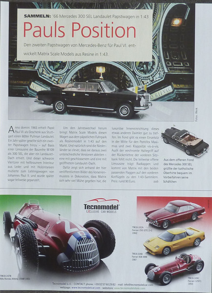 Mercedes 300 SEL Landaulet Pope Car in 1-43 by MSM...a model report #2001f